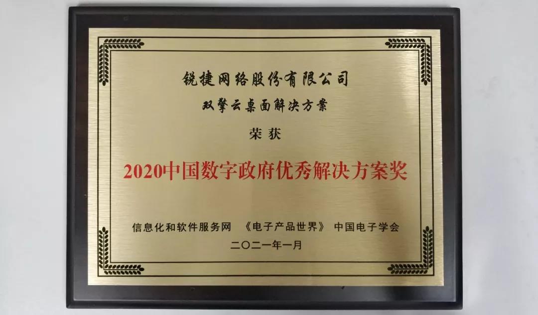 在《电子产品世界》杂志与中国电子学会主办的2020中国数字政府建设大会中,锐捷网络双擎云桌面解决方案凭借在多场景中的优秀表现,斩获“2020中国数字政府优秀解决方案奖”。