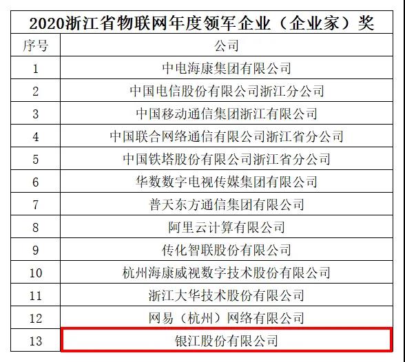 近日,浙江省物联网产业协会公布了《2020年浙江省物联网年度奖项》名单,作为物联网行业规范发展的引领者,银江股份凭借在物联网领域的突出表现和探索创新,荣获“2020浙江省物联网年度领军企业(企业家)奖”、“2020浙江省物联网年度产品创新奖”两项荣誉。