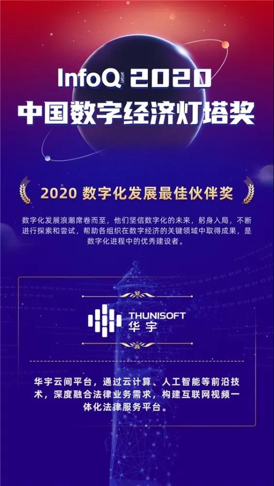 1月22日,中国最大、最具影响力的技术社区InfoQ发布了年度重磅榜单——2020中国数字经济灯塔奖。因在推动数字化发展中所做出的卓越贡献,北京华宇信息技术有限公司(以下简称“华宇”)获2020数字化发展最佳伙伴奖。