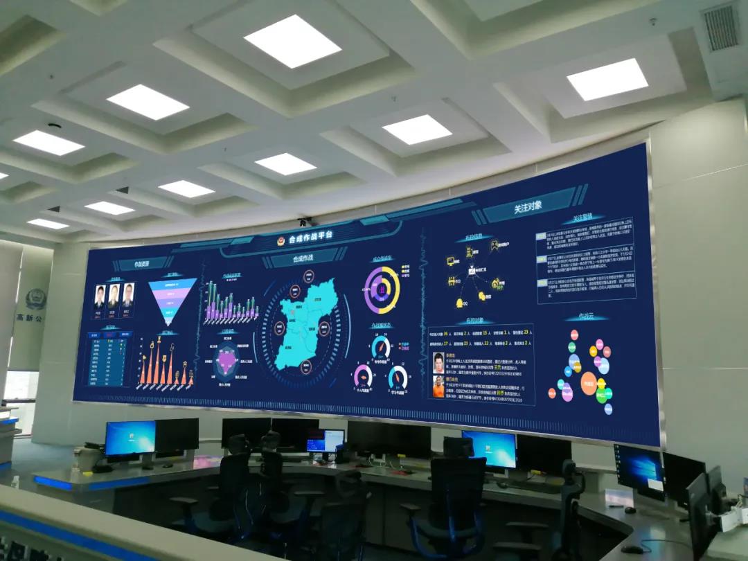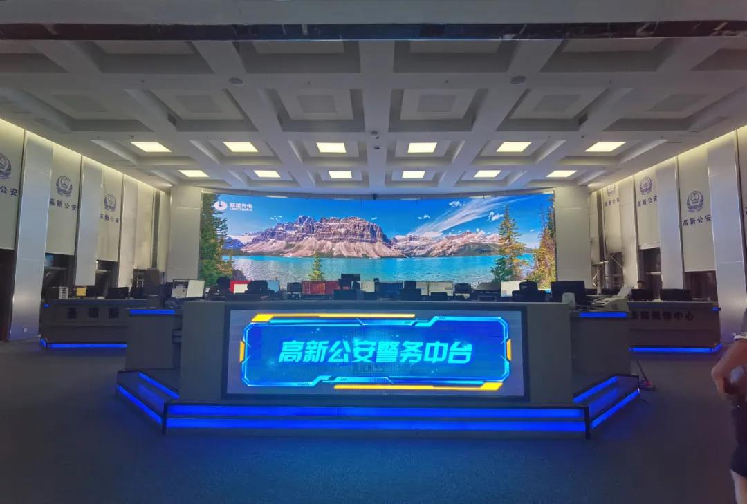 此次联建光电为长沙高新区公安分局量身定制的智慧公安显示应用解决方案,采用的是P1.5明星小间距系列,产品有低亮高灰、高刷新率、超静音、低温运行、稳定运行不黑屏等独特优势,分辨率高达9216×2592,可实现稳定流畅、清晰地展现多场景画面信息。