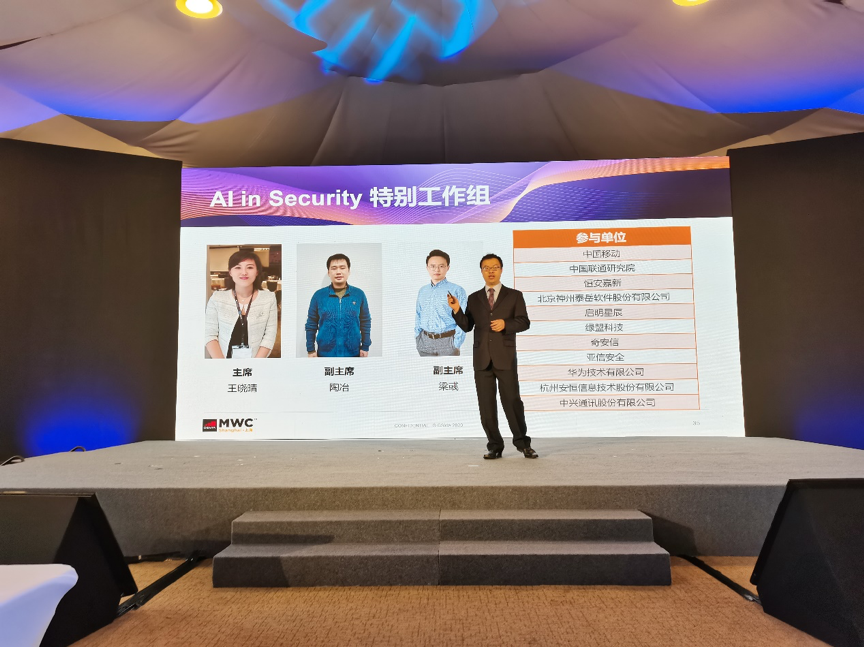 图 GSMA理事刘鸿介绍AI in Security项目参与单位