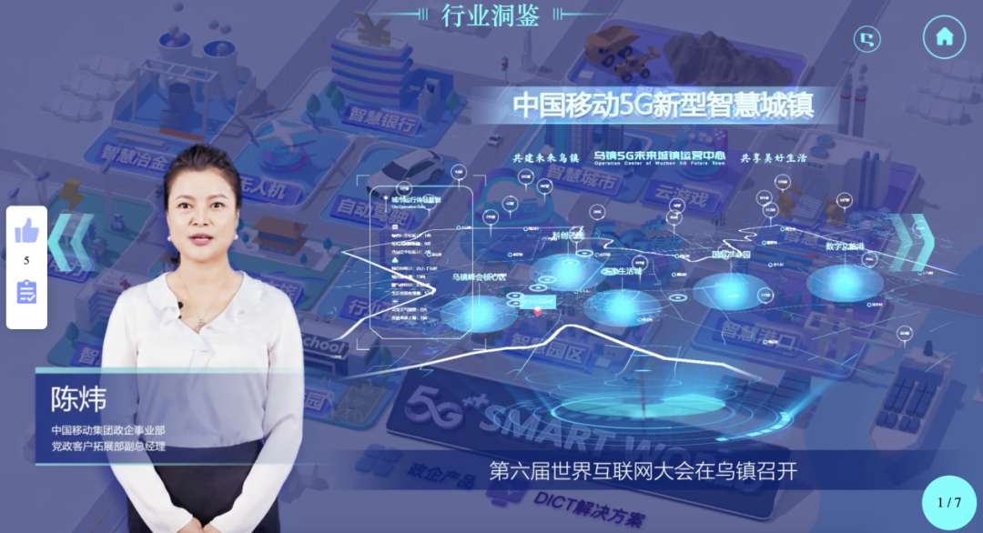 中国移动顺应转型热潮,积极应对挑战,做数字化转型的践行者,开拓线上宣传新模式,打造 5G全场景数字化展示平台,打破空间地域限制,高效传达行业最新动态,提供全新数字化展示服务!
