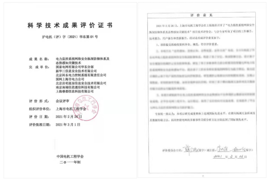 近日,上海市电机工程学会在上海组织召开了“电力监控系统网络安全纵深防御体系及态势感知关键技术”技术水平评价会议,对项目进行了技术水平评价,专家组认为“项目成果整体上达到国际先进水平,在横向隔离冗余阵列及其数据传输方法、面向智能电网的多维事件关联分析方法方面”达到了国际领先水平。