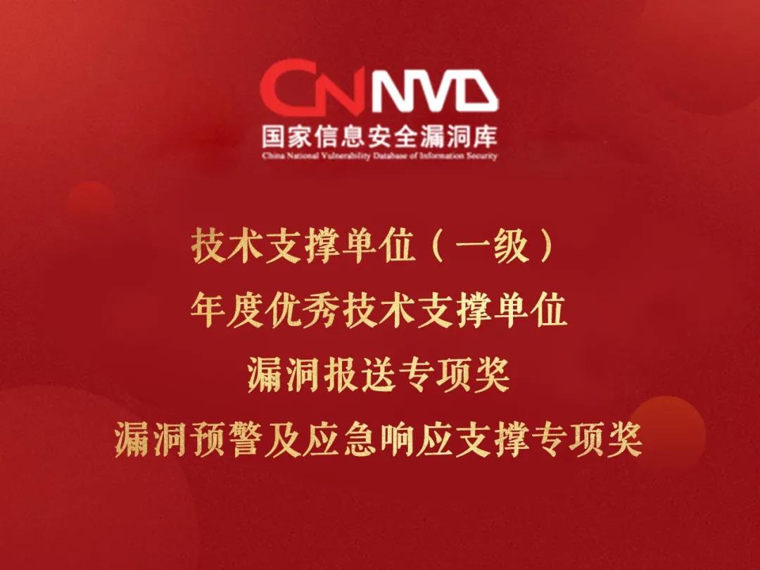 自2013年首批获得国家信息安全漏洞库(CNNVD)技术支撑单位(一级)起,启明星辰至今已连续8年获得该荣誉。多年来,启明星辰积极完成CNNVD重要漏洞信息报送、原创漏洞报送、漏洞发现、漏洞处置支撑、漏洞和安全事件预警信息共享及安全研究报告共享等任务,并通过远程和现场支撑方式,积极配合CNNVD相关漏洞预警和应急响应支撑工作。