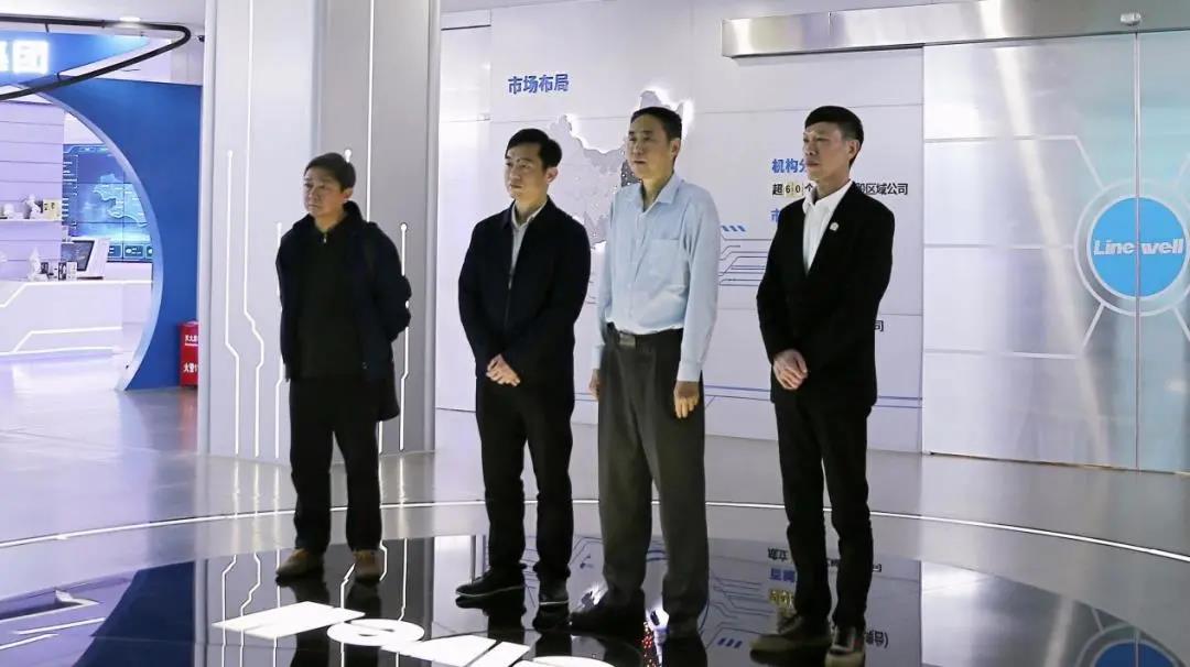 叶图强巡视员一行在集团现代治理科技展厅观看宣传视频和了解集团主营业务的产品情况