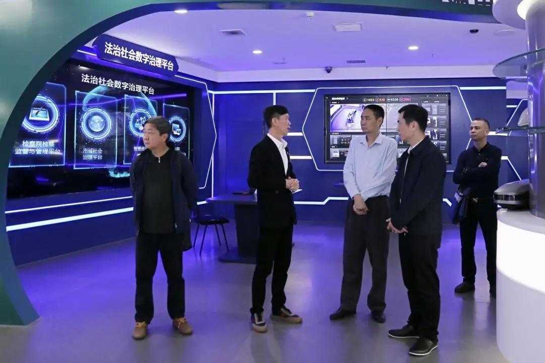 杜认真书记向叶图强巡视员一行介绍集团智慧政法和互联网+政务服务应用场景和典型案例