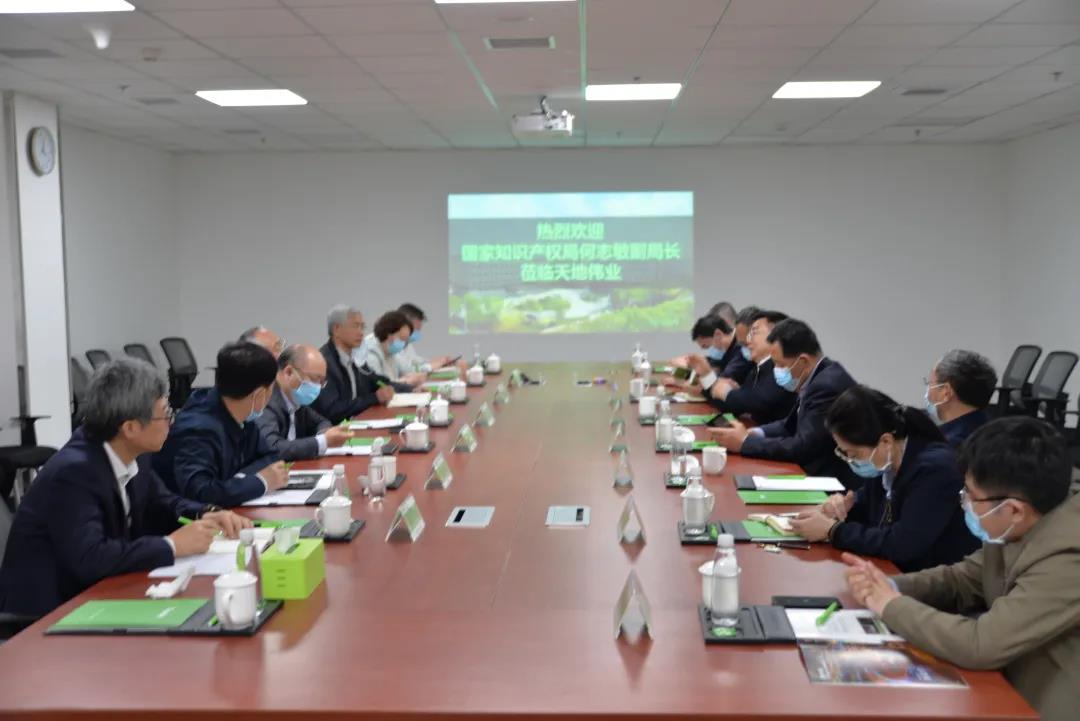 4月19日,国家知识产权局副局长何志敏、国家知识产权局商标局局长崔守东、国家知识产权局专利局专利审查协作天津中心主任岳宗全一行莅临天地伟业调研指导,旨在深入企业,了解企业科技创新和知识产权状况,助推科技型领军企业快速发展。天津市政府副秘书长朱峰、天津市知识产权局局长吴挺、天津市知识产权局副局长陈继江等陪同调研。