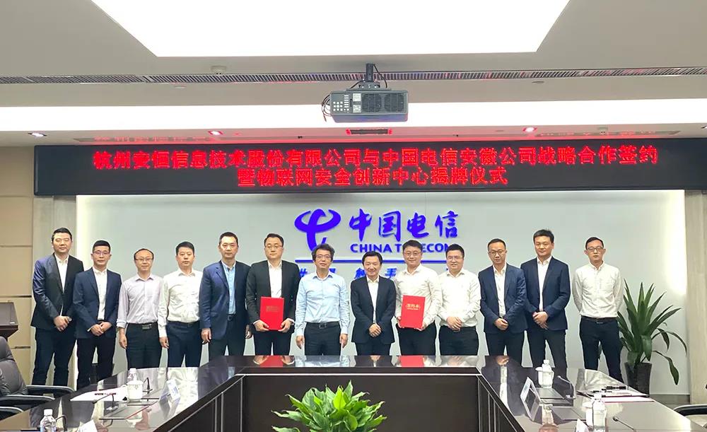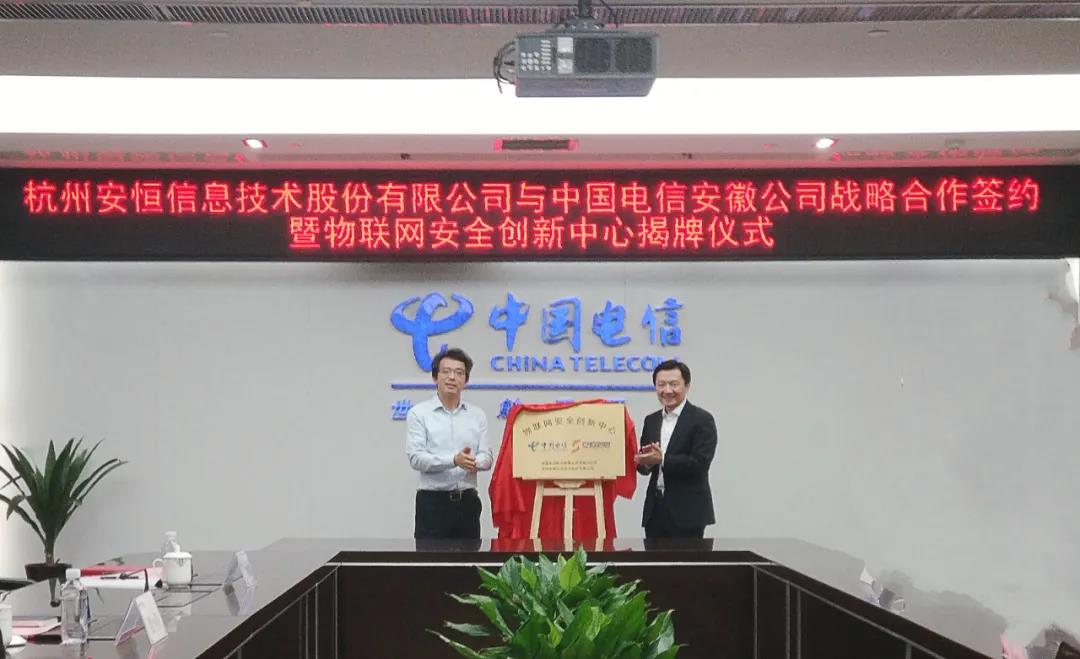 5月19日上午,中国电信安徽分公司(以下简称“安徽电信”)与安恒信息在合肥市邮电大厦举行战略合作签约暨物联网安全创新中心揭牌仪式。