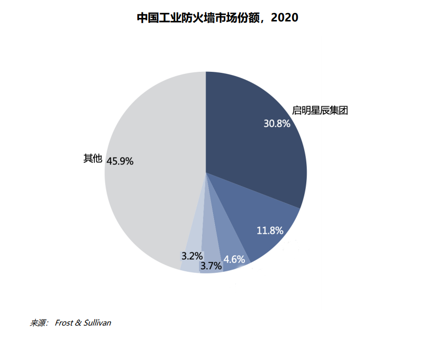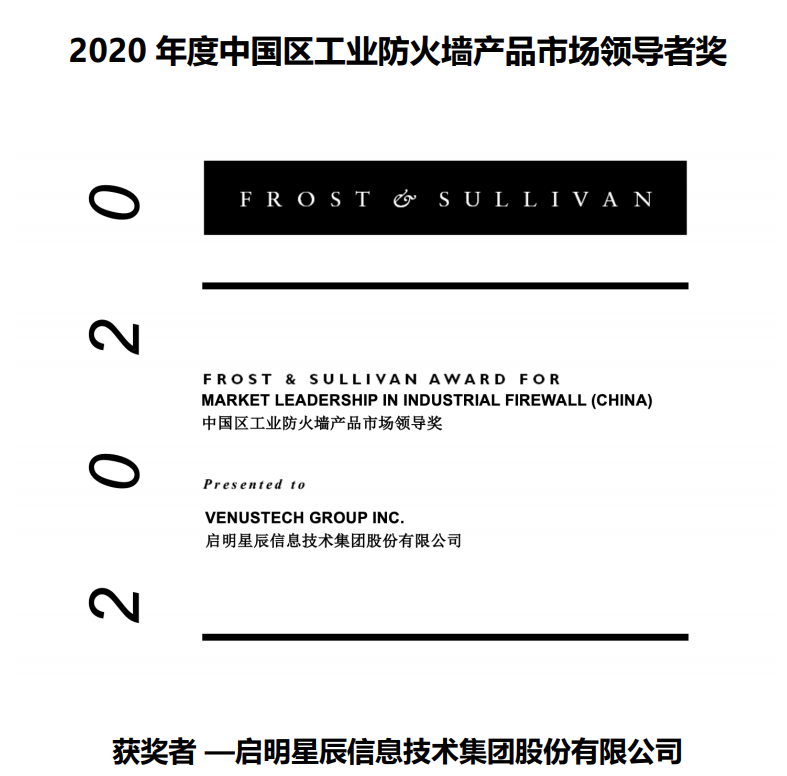 近日,全球权威分析机构Frost & Sullivan弗若斯特沙利文(以下简称:沙利文)发布了2020年中国区工业防火墙市场排名,启明星辰集团再次获得“2020年度中国区工业防火墙产品市场领导奖”,并且以30.8%的市场份额排名第一,至此启明星辰集团工业防火墙已连续三年国内市场排名第一。