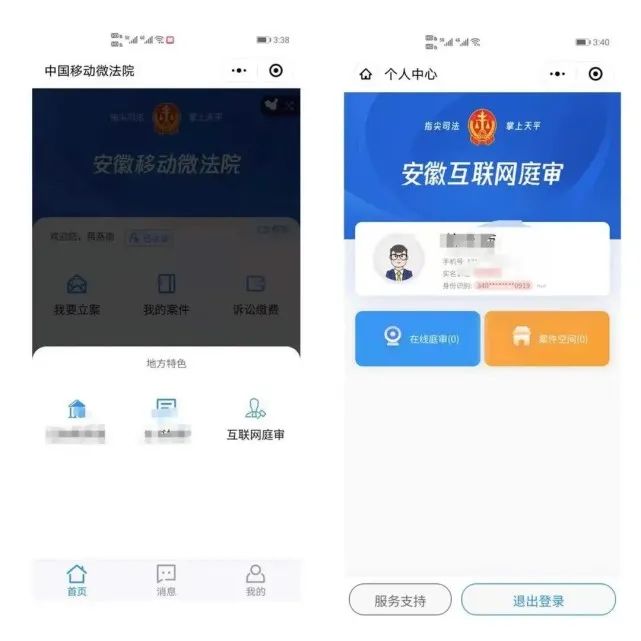 当前我国微信的使用率很高,中国移动微法院之互联网庭审正是以微信为接口开发,在微信里直接搜索“中国移动微法院”便可以使用。使用前需要实名认证,输入身份证、手机号,进行人脸识别以及签名等安全措施保证当事人身份的真实性。例如,在安庆法院立案的当事人,直接选择“安徽省”—“地方特色”—“互联网庭审”模块,微信用户一键登录后选择在线庭审,当事人就能够看到自己的案件,在手机端进行互联网庭审活动,也可以用电脑登陆相应模块。系统中可查询电子证据、使用电子签名、笔录等。