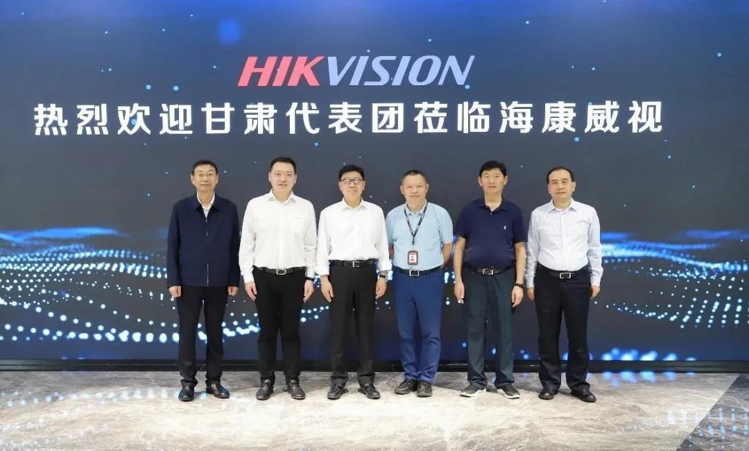 5月26日,甘肃省人民政府副省长张锦刚率甘肃代表团一行参观考察海康威视。海康威视高级副总裁蔡昶阳陪同参观。