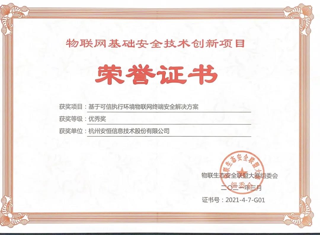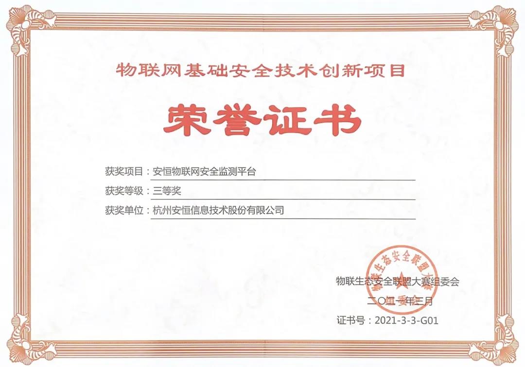 会议宣布了物联网基础安全技术创新手段征集活动结果,安恒信息物联网安全监测平台与基于可信执行环境物联网终端安全解决方案两款产品(解决方案)成功入选。