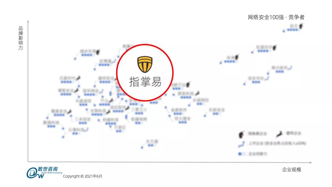6月16日,国内数字化产业第三方调研与咨询机构数世咨询正式发布《中国网络安全百强报告(2021)》(以下简称百强报告)。百强报告调研了国内700余家经营网络安全业务的企业,基于上百项评价指标结合多种角度、不同维度的企业相关数据进行梳理和评价。并遴选综合实力较为突出的100家企业,评为「综合实力百强」,通过品牌影响力、企业规模、技术创新力三大维度,以数轴点阵图的形式予以展现。