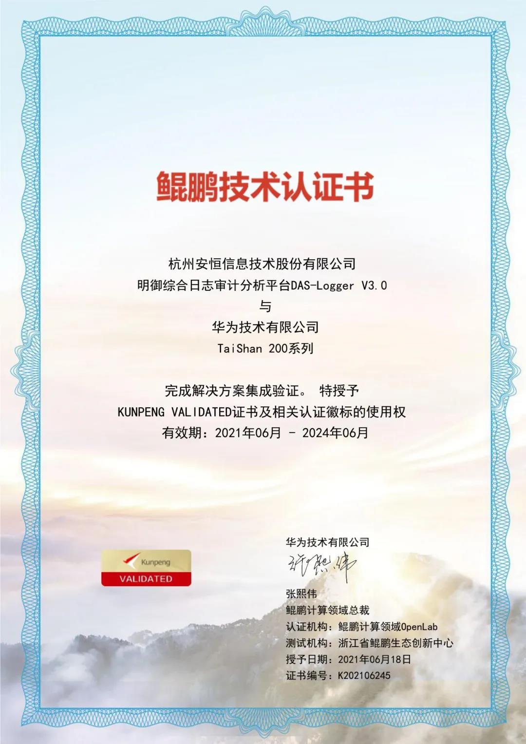 近日,安恒信息明御综合日志审计分析平台率先通过鲲鹏Validated认证。作为国内第一个也是唯一一个通过认证的日志审计产品,基于鲲鹏BoostKit和调优技术,明御综合日志审计分析平台解决方案得到了性能、处理、运行等多方面的显著优化。