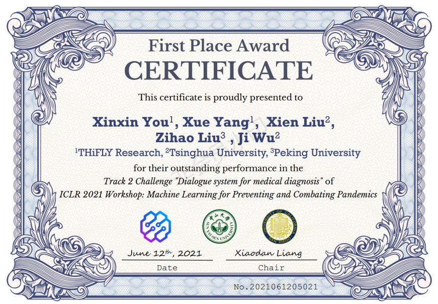 近日,清华-讯飞联合研究中心参加由ICLR 2021发起的MLPCP挑战赛——疾病自动诊断对话系统赛道,在全球70+支参赛队伍中夺得第一名。