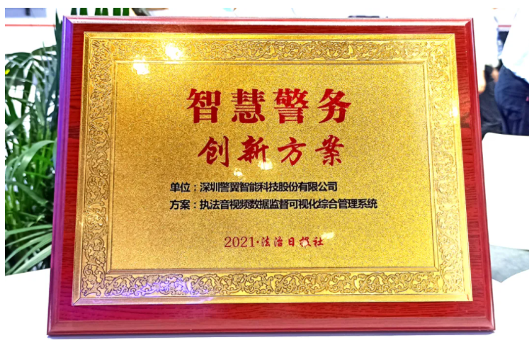 本届政法展设置了“2021全国政法智能化建设创新案例征集活动”,对近年来在政法智能化有特殊贡献的产品和企业予以表彰和肯定。7月27日开展当天上午,颁奖盛典隆重举行,警翼的移动执法视音频解决方案在众多行业翘楚中脱颖而出,一举拿下“智慧警务创新方案奖”。
