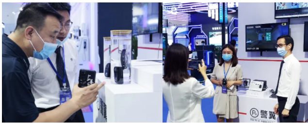 警翼展出的强大产品阵容吸引了众多参展观众、媒体朋友驻足参观以及专业人士莅临警翼展位做深入交流,探讨合作。尤其强调的是,本次警翼展台主推三大亮点:警翼5G旗舰H5精彩亮相,行业首发的5G专业执法终端P7和行业首创的酒检执法智能联动解决方案,备受参观嘉宾和行业关注。