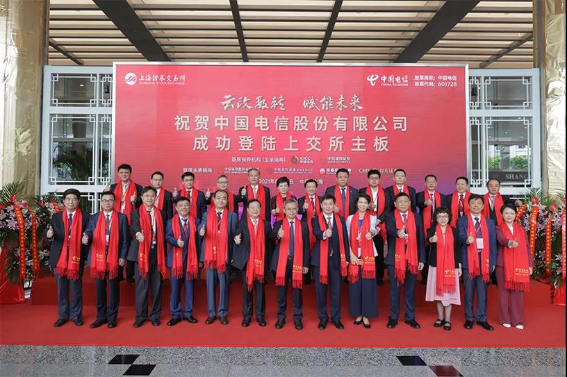 范渊先生(后排中间)受邀出席中国电信上市仪式