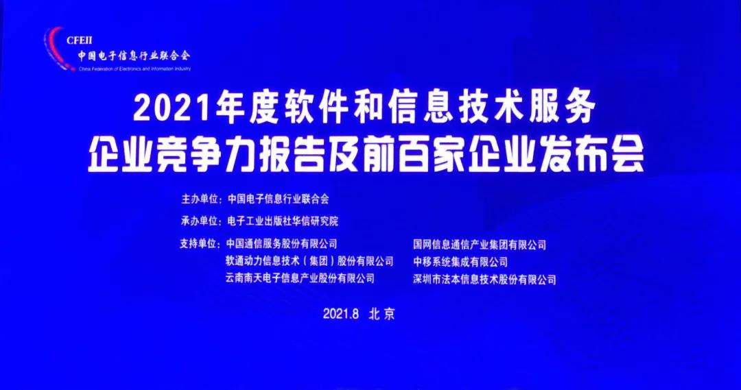 8月27日,2021年度《软件和信息技术服务企业竞争力前百家企业名单》在京正式发布,华宇软件连续6年入选。