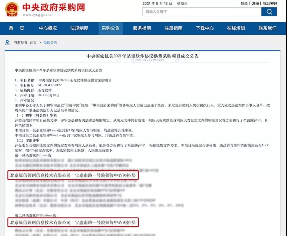 近日,中央国家机关政府采购中心陆续发布了2021年供货采购项目成交公告。启明星辰集团全资子公司书生电子的电子签章、书生阅读器分别成功入围“签章软件协议供货采购项目”和“版式软件协议供货采购项目”、启明星辰集团投资公司辰信领创的辰信景云终端安全管理系统7.0的Windows版和Linux版入围“杀毒软件协议供货采购项目”,体现了政府部门对书生电子、辰信领创的产品技术与服务能力的高度认可。