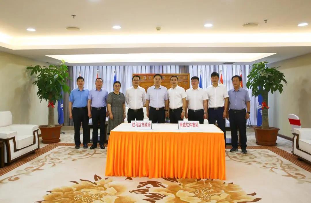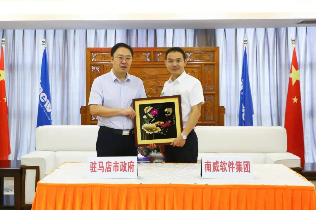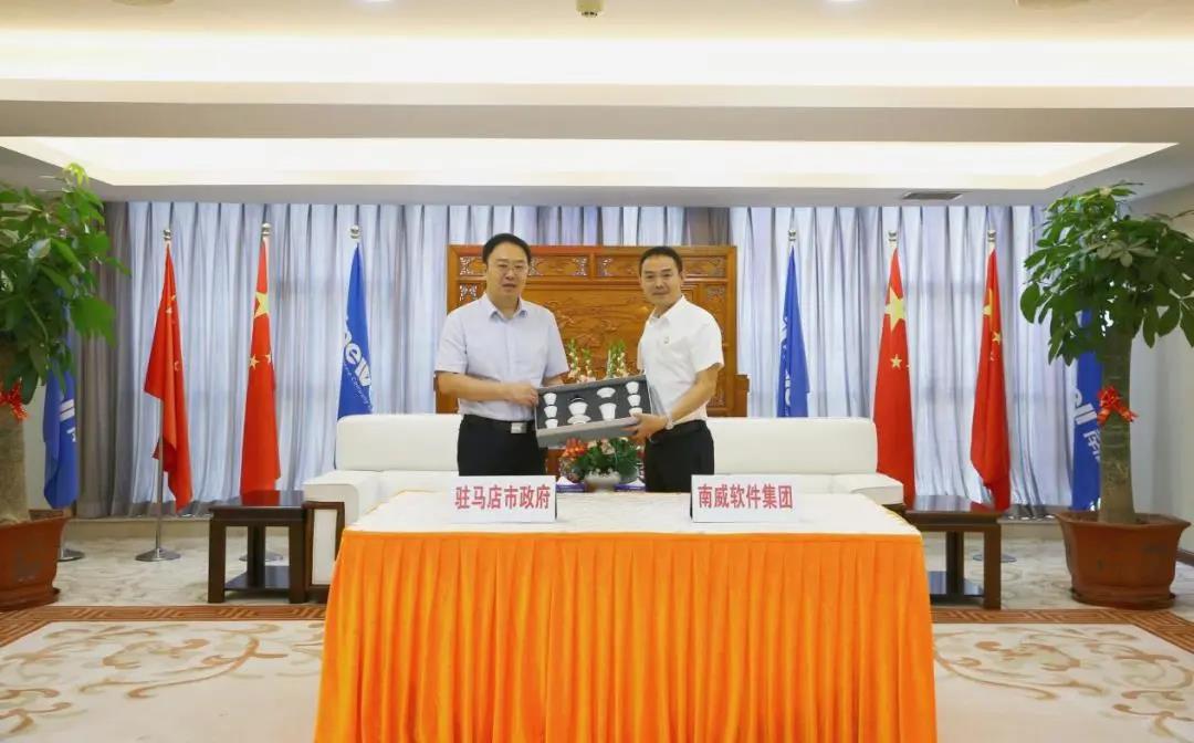 签约仪式前,双方举行座谈会,围绕开展智慧城市建设、推动数字经济发展等领域合作事宜进行了深入友好交流,并达成广泛共识。座谈会上,林立成执行总裁介绍了集团的发展历程、业务概况以及项目情况。他表示,驻马店位于河南省中南部,素有“豫州之腹地、天下之最中”的美称,是河南省重要的人口大市、农业大市和新兴工业城市,拥有便利的区位交通、雄厚的人力资源和广阔的消费市场,在推进产业数字化方面具有坚实基础。南威软件集团将以此次合作为起点,充分发挥企业创新、产品研发等优势作用,积极投身驻马店数字经济建设,为驻马店产业数字化、数字产业化发展赋能加力,助力驻马店经济社会高质量发展。