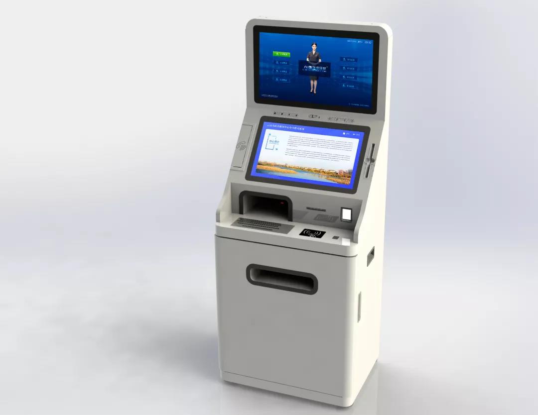 集成智能咨询问答、证件识别、材料扫描、语音通话等功能,通过副屏语音交互引导,主屏操作办理的方式,支持自助预约、咨询、办理等功能。