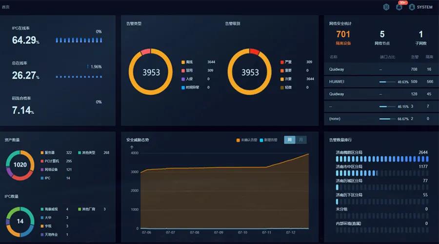 视频监控安全检查平台(VSI) ,是专门针对视频监控网络进行高效的资产发现与风险评估的一体化产品,能够帮助用户实现资产普查、风险评估、弱口令检测及关键系统的配置核查,平台通过预置的超过17万条POC漏洞库,能够对任意网络设备风险漏洞进行发现,并内置视频网设备专属漏洞规则,能够对不同厂商、不同品牌型号的视频监控类设备存在的漏洞进行扫描发现,通过高度专业化的报告呈现,提供全面、准确、具有指导意义的安全管理建议,为视频监控网络风险管控提供支撑,同时可与准入控制进行联动,保证接入设备的状态安全。