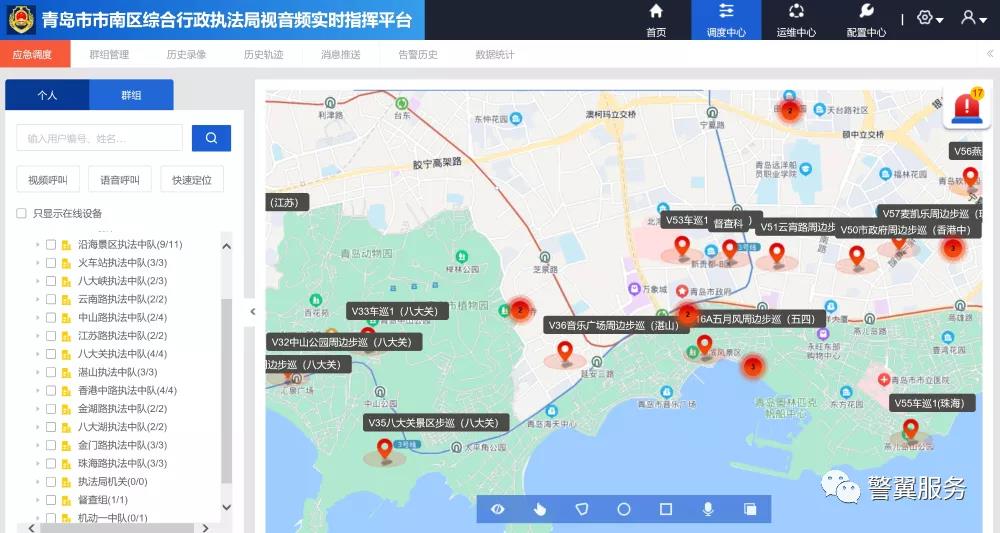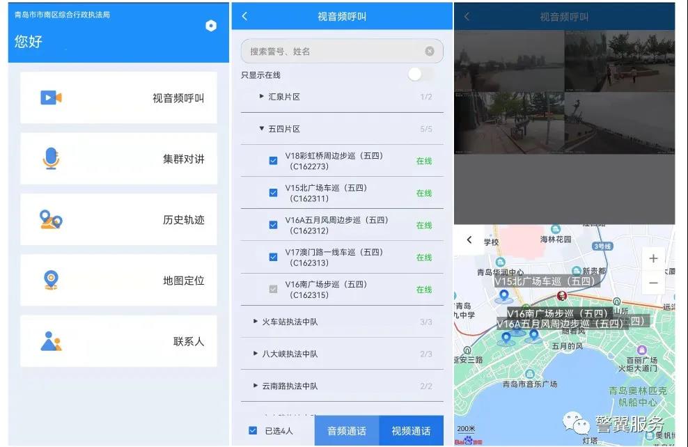 5G音视频实时指挥系统,主要借助5G网络,利用5G高速度、低延时的特点,充分运用数据链、人工智能等先进技术,具备实时视频监控、视音频指挥调度、信息发布、数据存储、录像回放、轨迹查询、智能识别、电子围栏、数据统计等功能,同时整合五四、栈桥景区执法车平台,兼容原视频监控、400M集群对接、4G公网对讲等系统,让老设备焕发青春,实现了互联互通。