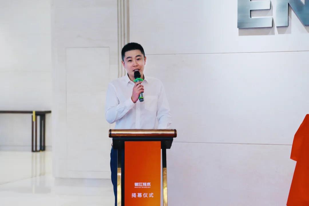 伴随着热烈的掌声,11点18分,银江集团董事长王辉、银江技术首席执行官王腾、首席科学家吴越、股东代表共同揭牌。