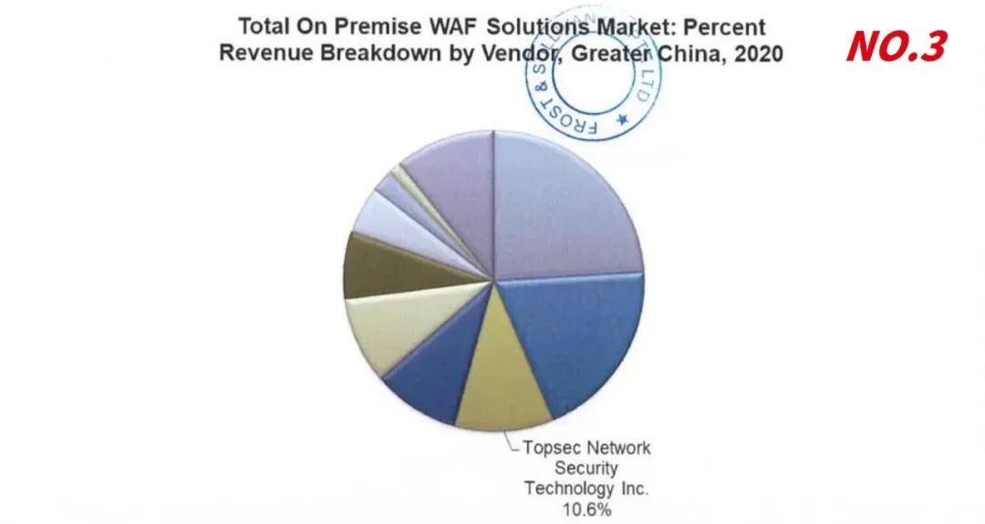 继第一名中标中国移动集采项目后,天融信WAF又取得新突破,强势入围全球权威分析机构Frost & Sullivan《2020年大中华地区Web应用防火墙市场报告》,市场份额排名第三。本次入围充分体现了市场及广大客户对天融信在Web安全领域的高度认可。