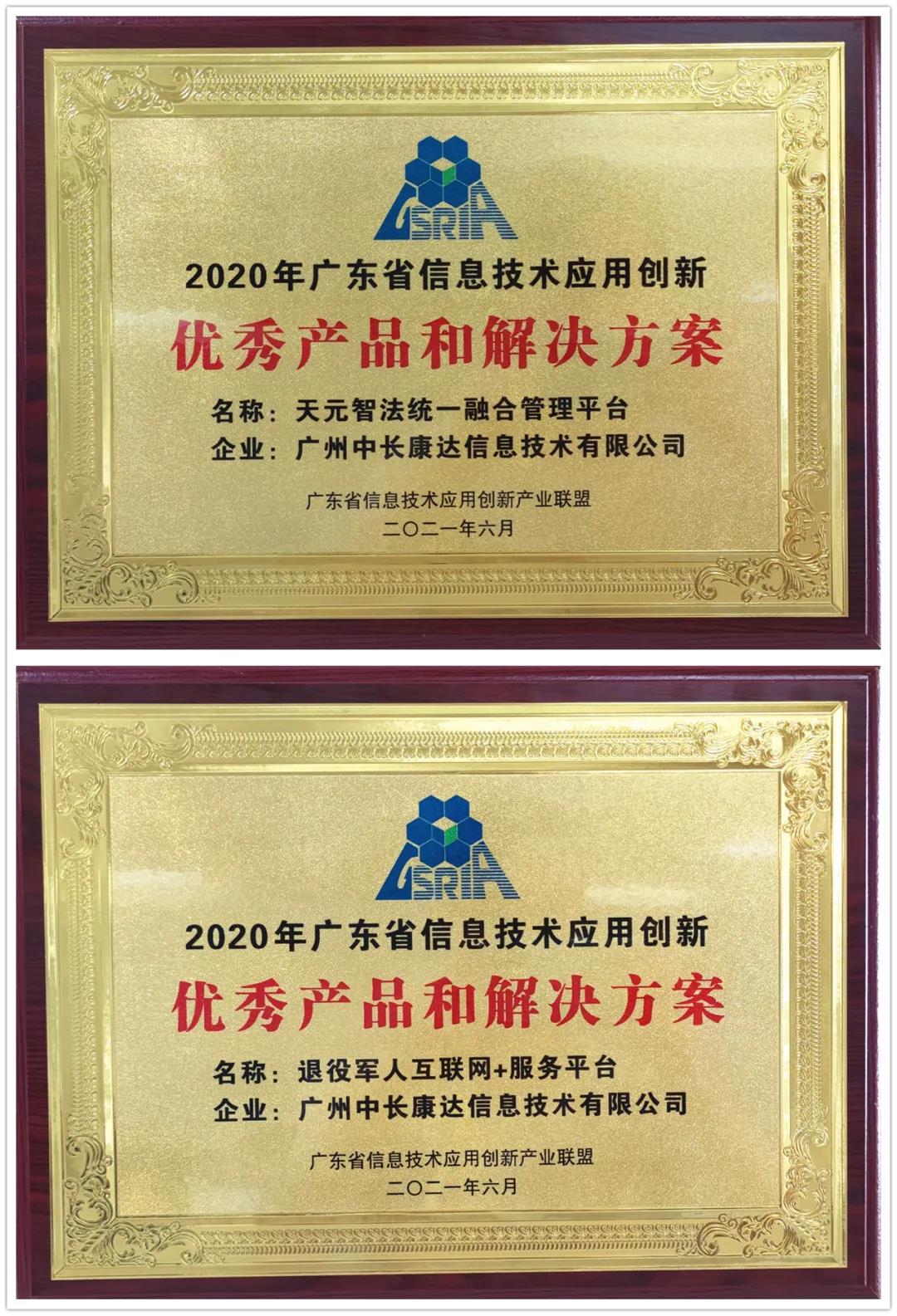 大会对联盟2020年度“先进单位”、“突出贡献者”和“优秀产品和解决方案”进行了表彰,中长康达“天元智法统一融合管理平台”、“退役军人互联网+服务平台”荣获“2020广东省信息技术应用创新产业联盟优秀产品和解决方案”奖项,云计算工程师王伟荣获“2020年度先进工作者”称号。