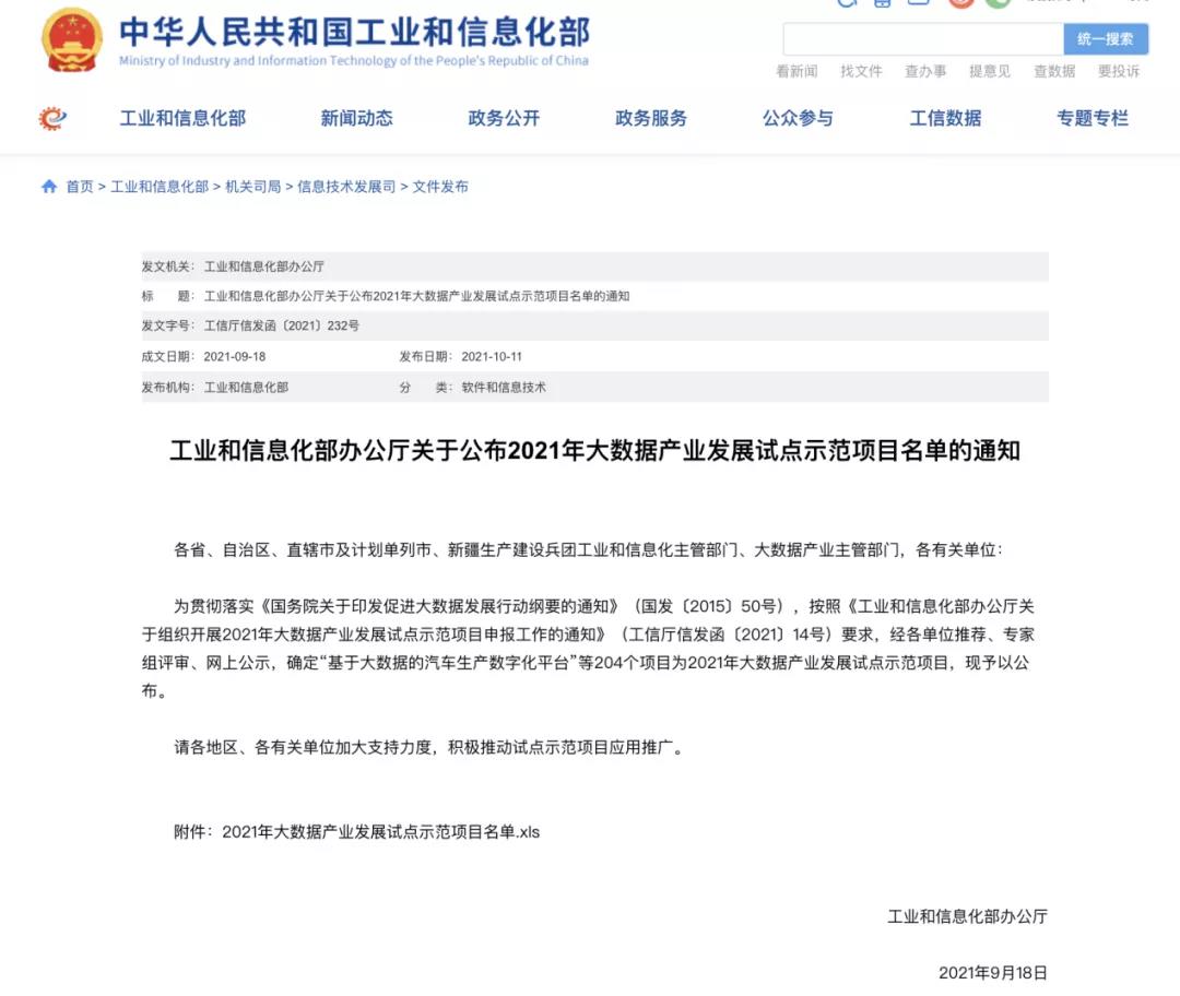 在工信部近日公布的“2021年大数据产业发展试点示范项目公示名单”中,安恒信息自主研发的“跨行业全加密数据安全可信融合计算平台”从全国数百家参评单位项目中脱颖而出,成功入选大数据产业发展试点示范项目。这标志着安恒信息在“大数据安全”领域得到认可,成为工信部推荐平台。