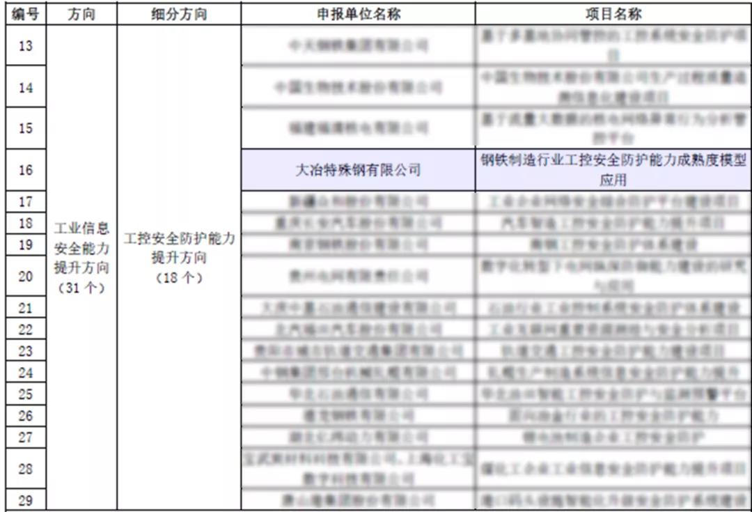 近日,工信部公示了“2021年新一代信息技术与制造业融合发展试点示范名单”,由大冶特殊钢有限公司、杭州安恒信息技术股份有限公司联合申报的“钢铁制造行业工控安全防护能力成熟度模型应用”经过企业自主申报、地方推荐、专家评审等环节进入公示名单。
