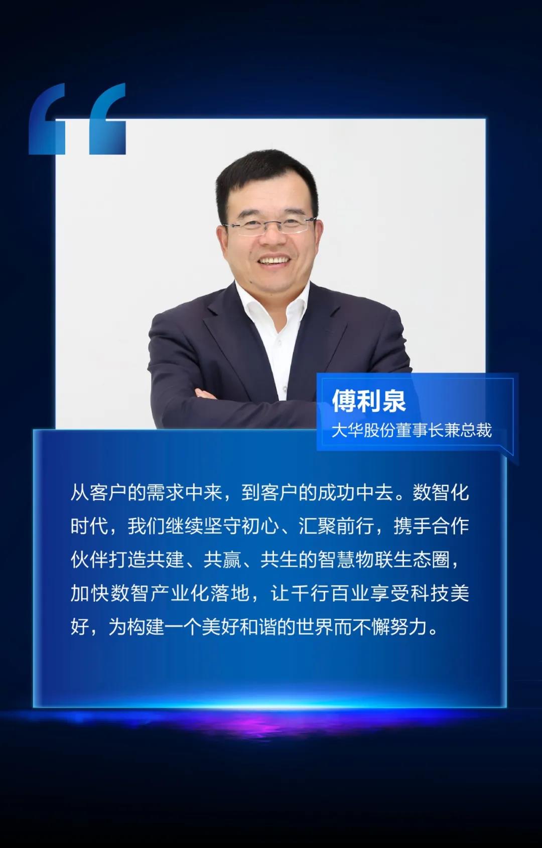 傅利泉认为,走过20年快速发展的大华股份,得益于始终“坚守价值观”的敬畏之心,“以客户为中心”的极致追求和“高效协同”的凝聚力,未来将继续坚守初心、汇聚前行,为城市可持续发展与企业数智化转型贡献大华力量。