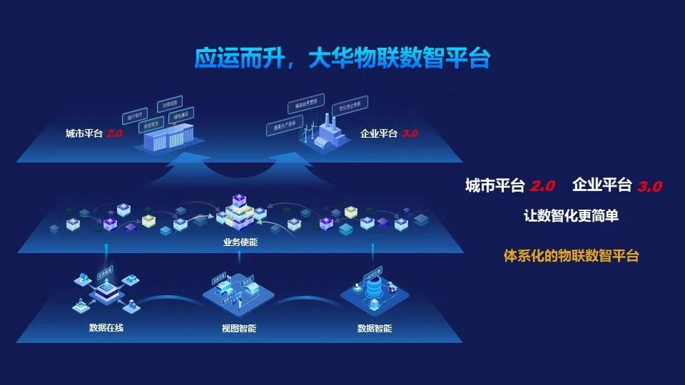 会上,大华分享了对于业务、数据、技术多维思考的一体化数智技术支撑体系。在云联万物、数智未来的背景下,大华以数据为燃料,以智能为引擎,构筑物联数智平台,发布城市平台2.0和企业平台3.0。面向数智城市业务,通过视图智能引擎和数据智能引擎进行全流程智能化赋能,释放多维数据价值,普惠数智创新;针对智慧企业业务,打造数智中台,赋能生产提效、辅助经营管理决策。为快速响应客户敏态诉求,大华构建软件组件化体系和自动化集成开发平台,使能业务敏捷创新,让行业数智化转型更简单。
