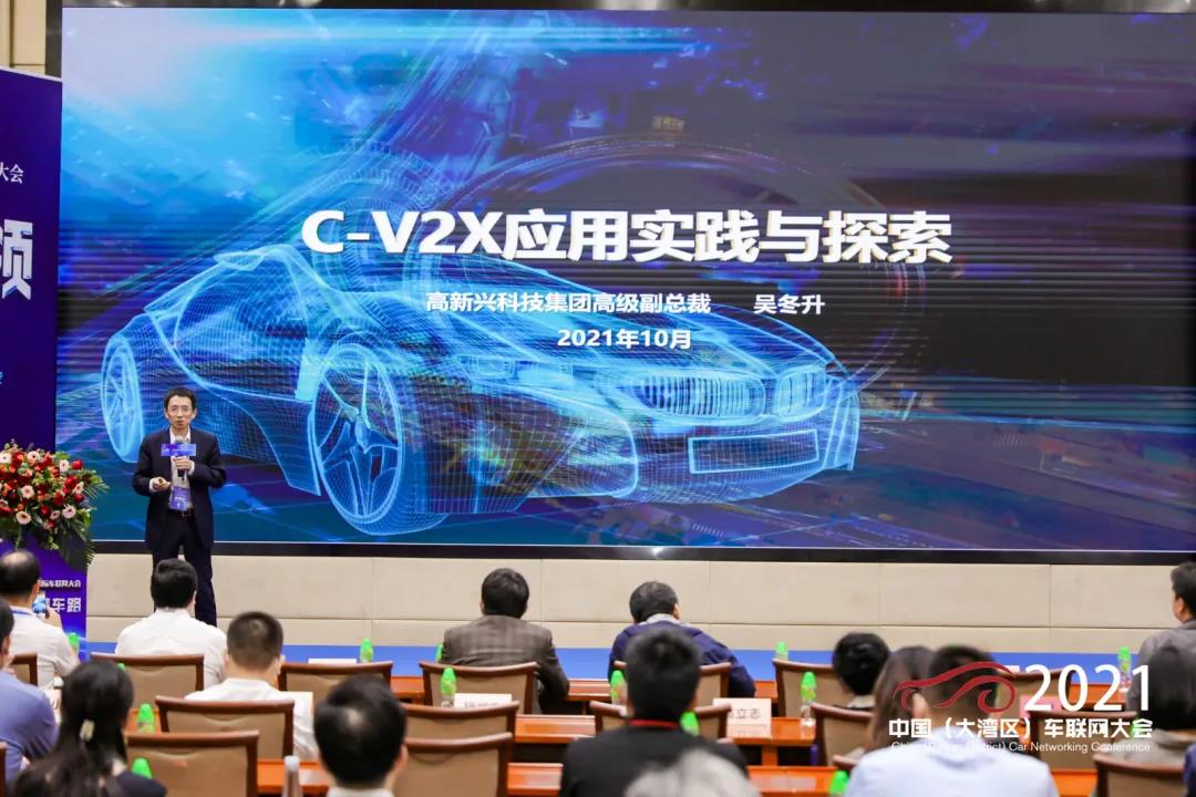 高新兴科技集团集团高级副总裁、智能网联事业部总经理吴冬升参与了大会主论坛“粤港澳大湾区(城市道路)智能网联设施建设”标准发布仪式,并就高新兴关于C-V2X的应用实践与探索进行了分享。