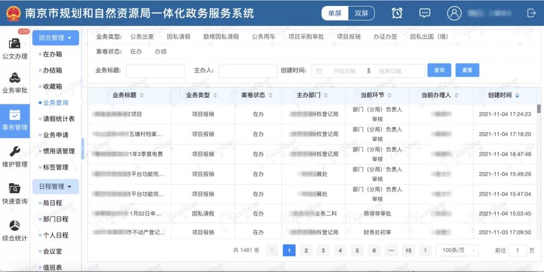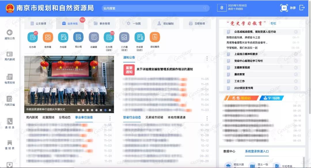 项目围绕局内“两统一、七个关键环节”核心职能,对改革后的多个审批业务及环节进行集中建设,包括征地前期、用地报批业务流程,共同组成“批、供、用、补、查”等33项业务,同时建设了CAD审批端与WebGIS图形审批端以辅助业务审批,并结合局内管理要求建设了事务管理系统,全面实现自然资源政务一体化全业务、全流程网上审批和全程监管,极大地提升了辅助审查的科学性以及政务服务效能。
