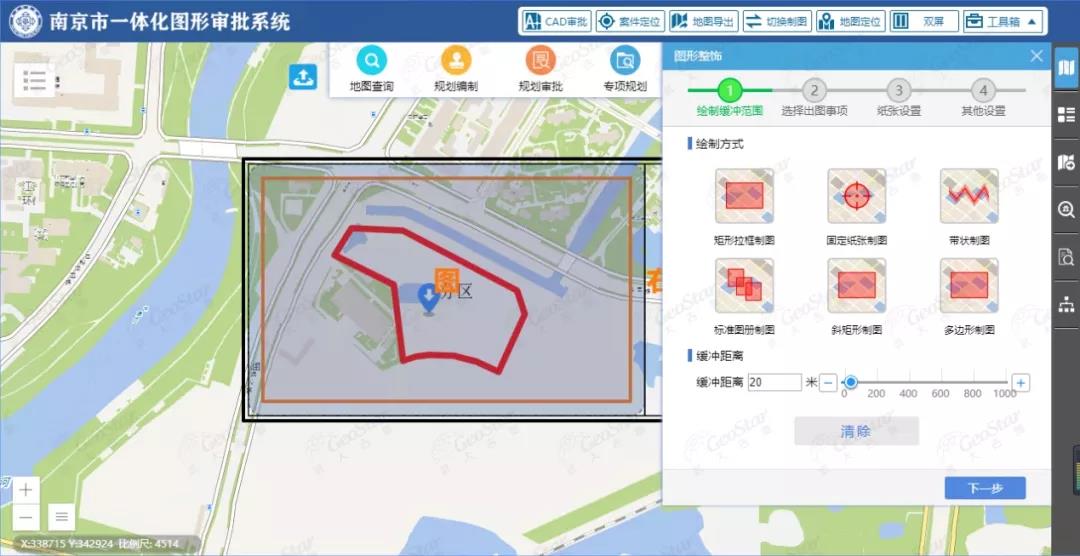 系统提供了WebGIS图形应用、CAD图形应用下的整饰制图,通过制定各类规划数据的符号模板,实现快速、稳定出图,支持条状范围和大范围制图,有效提高了出图效率。同时能输出PDF格式电子文件供领导审核,极大提高了审批效率。
