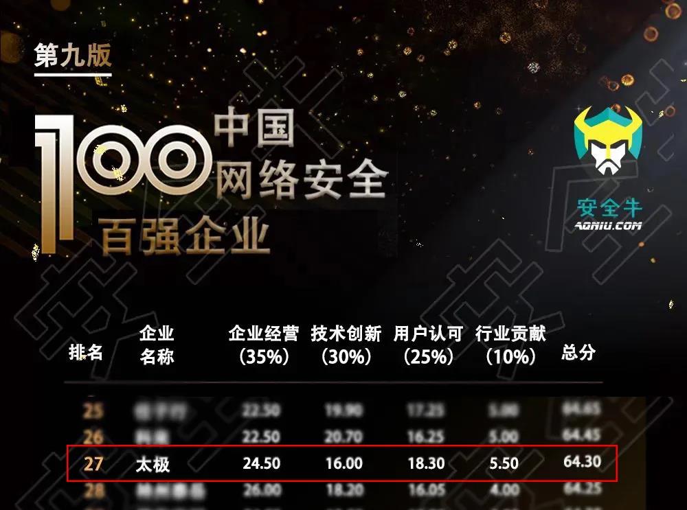 此次发布的《中国网络安全企业100强》是安全牛百强报告的第九版,从营收占比、用户数量、产品成熟度等角度,对细分领域中有较突出表现的企业进行了收录,太极股份作为数据安全细分领域的领先企业位列其上。