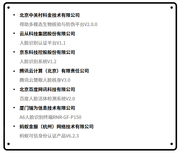 本次测评也为云从的技术安全性再添权威肯定。此前,人脸识别认证平台通过公安部安全与警用电子产品质量检测中心的安全检测,符合《GA/T 1212-2014安防人脸识别应用 防假体攻击测试方法》的标准。信通院与公安部安全与警用电子产品质量检测中心的“双认证”,成为云从技术安全可信、能够为客户提供全面可靠服务的有力证明。
