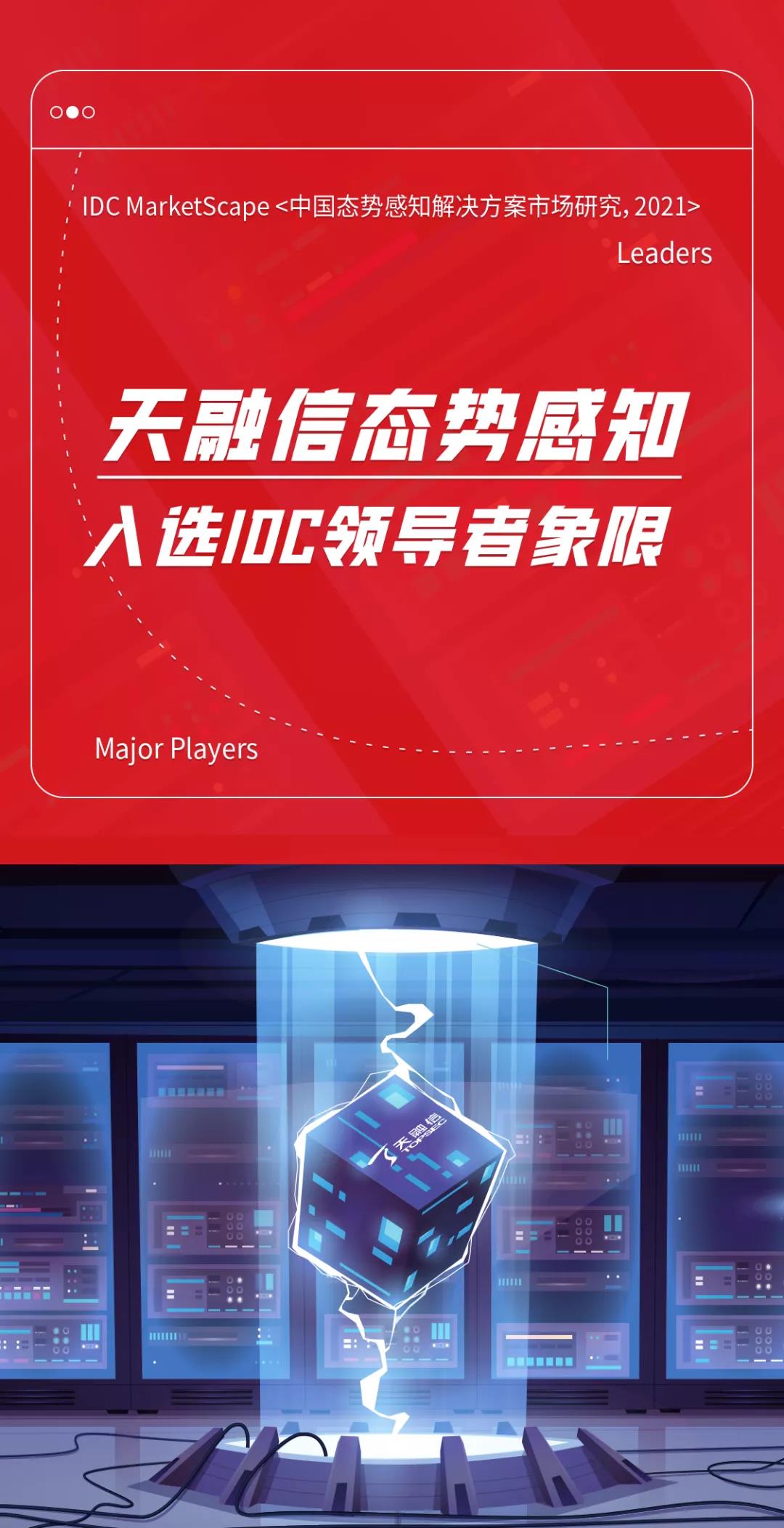 11月22日,国际权威咨询机构IDC正式发布《IDC MarketScape:中国态势感知解决方案市场2021,厂商评估》报告,天融信态势感知入选领导者象限!