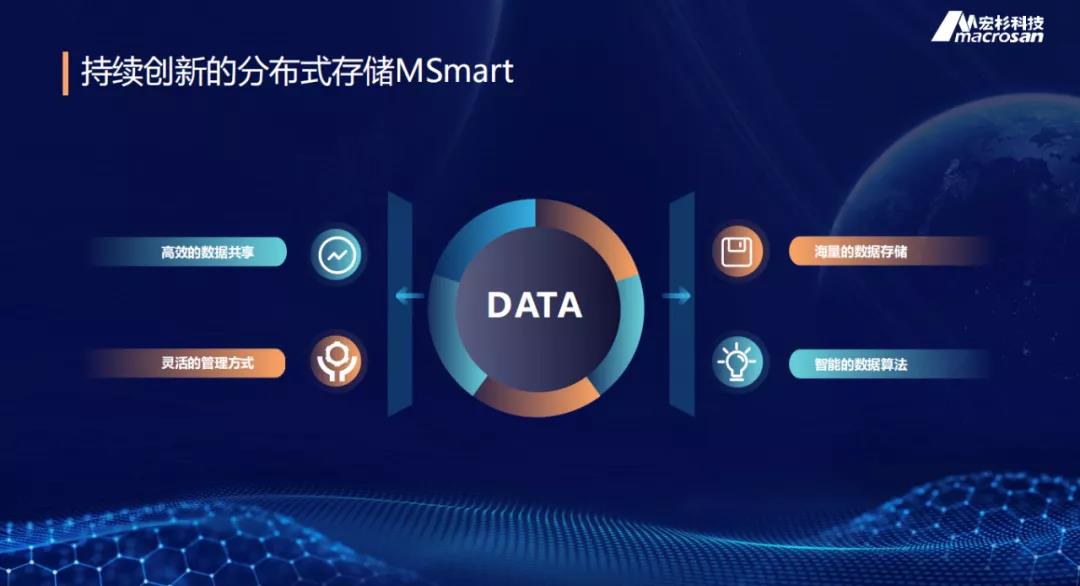 宏杉科技产品部副总工张夏男在题为“持续探索与创新,驱动分布式存储新未来”的演讲中表示,宏杉科技始终坚持不断创新,并在分布式存储领域早已布局,从公司成立之初就推出的基于定制化硬件的分布式存储MC3000,到自主研发的采用分布式概念的存储软件平台CloudSUN,再到通用型分布式存储MSmart,致力于为用户提供优秀的分布式存储解决方案。