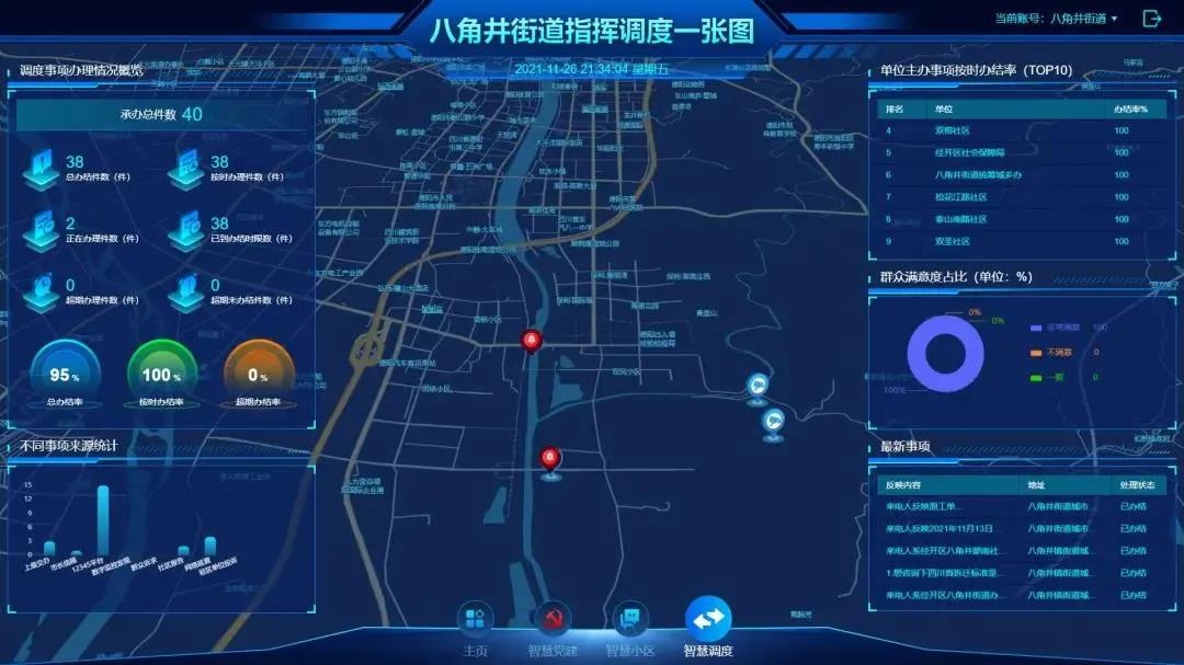 按照德阳市委组织关于“一定三有”深化街道职能转变的要求,在街道成立调度中心,建立调度平台,在街道辖区重点点位配备太阳能AI摄像头,对砂石盗采、山林防火、道路扬尘、防汛抗旱等场景实时监控,对接12345德阳政务服务热线、德阳市民通等数据,群众反映事项归集到调度平台,通过技术赋能,实现问题的收集、分类、派单、处置、自动打分。事项办理全程跟踪、全程考核、全程留痕,实现调度智能化。