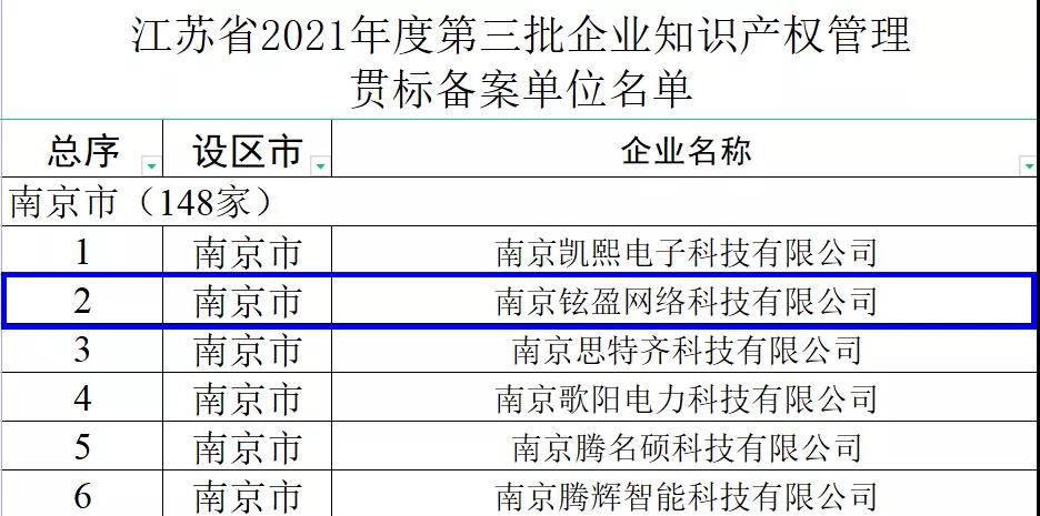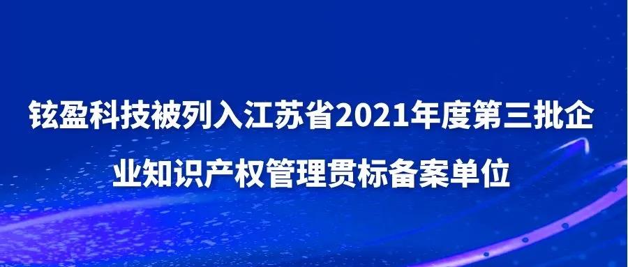 根据《关于做好2021年度江苏省企业知识产权管理标准化工作的通知》(苏知发〔2021〕33号),经备案审核,确认江苏省1817家企业为知识产权贯标备案单位,铉盈科技通过认定,荣列其中。