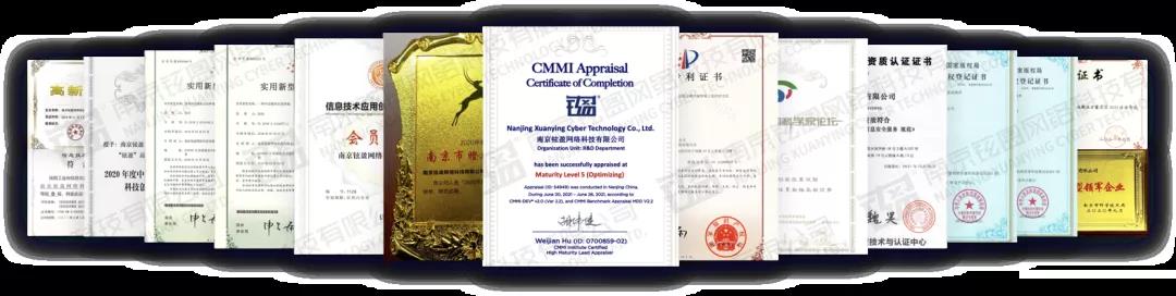 面对激烈市场环境,“知识产权贯标”相当于为企业知识产权穿上“防弹衣”。铉盈科技自成立以来,高度重视知识产权工作,至今已拥有5项国家发明专利,20余项国家实用新型专利和100余项国家软件著作权。同时,铉盈科技荣获了国家高新技术企业、江苏省专精特新软件企业、连续两年南京市瞪羚企业、南京市创新型领军企业等多项称号及认证。