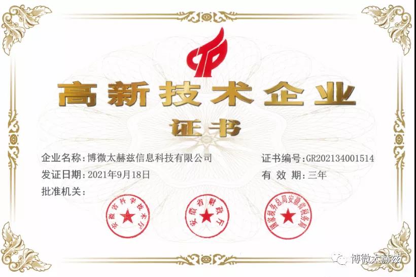 高新技术企业认定工作受科技部、财政部、税务总局三部门联合管理和监督,审核程序严格,每三年需重新认定。本次认定系博微太赫兹公司原高新技术企业证书有效期届满后的重新认定,是对公司整体水平的再次肯定和认可,同时也是对公司的一种鞭策和激励。