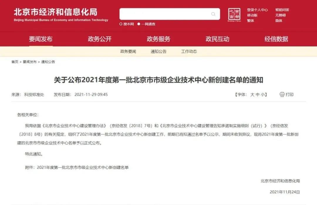 近日,北京市经济和信息化局公布了“2021年度第一批北京市市级企业技术中心创建名单”。北京泰豪榜上有名!