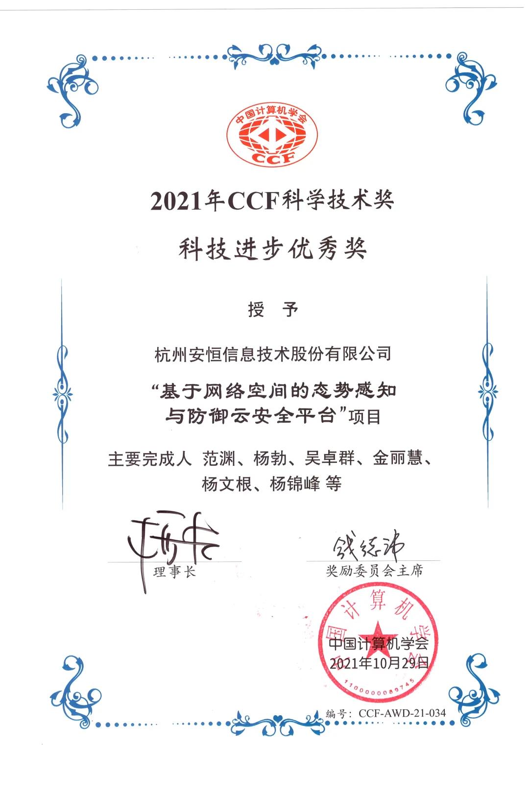 作为衡量企业、高校技术创新水平最权威的科技奖项之一,由中国计算机学会发起的“2021年CCF科学技术奖”评选结果揭晓,安恒信息凭借“基于网络空间的态势感知与防御云安全平台”项目在52个申报项目中脱颖而出,荣获“2021年CCF科学技术奖科技进步优秀奖”。安恒信息在本次评选中获此殊荣,展现了其在专业领域的科技创新能力。
