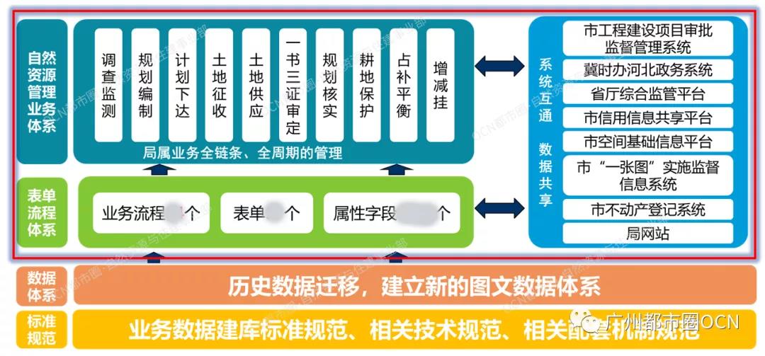 石家庄市自然资源管理平台以构建现代化治理体系,提高自然资源治理能力为出发点,遵循立足现状、集约节约、适度超前、互联共享的建设原则,对调查监测、规划编制、用途管制、开发利用、生态修复、耕地保护等自然资源管理的业务事项和公文进行一体化管理,实现了从调查监测、规划编制、计划下达到土地征收、土地供应、“一书三证”审定、规划核实及耕地保护、占补平衡、增减挂钩等局属业务全链条、全周期的管理。打造空间“一张图”、管理“一张网”、应用的“一平台”,构建线上线下一体化的石家庄市“互联网+自然资源”政务服务体系,形成一体的自然资源信息化管理体系,推动自然资源管理和服务水平迈向科学化、精细化、现代化。