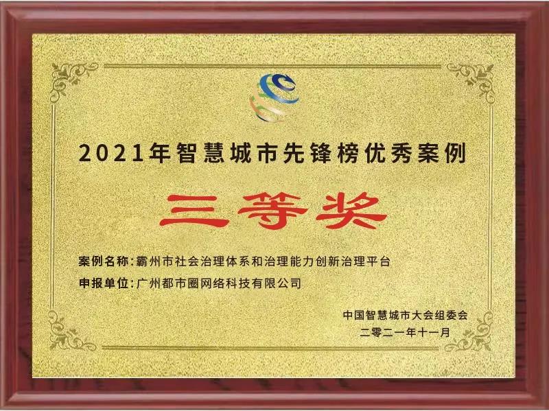 在2021年度的中国智慧城市大会中,都市圈《霸州市社会治理体系和治理能力创新治理平台》荣获“2021智慧城市先锋榜优秀应用案例”三等奖!